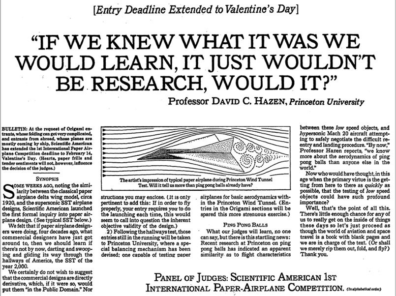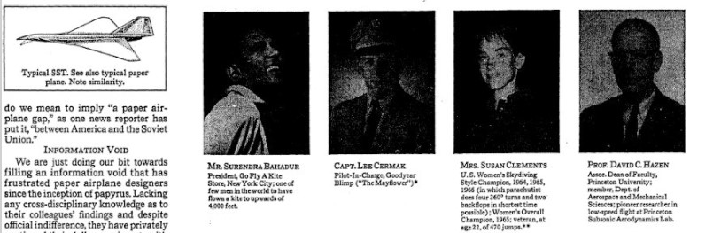 | Advert for The 1st International Paper Airplane Competition in The New York Times, 10th January 1967 | |||||||