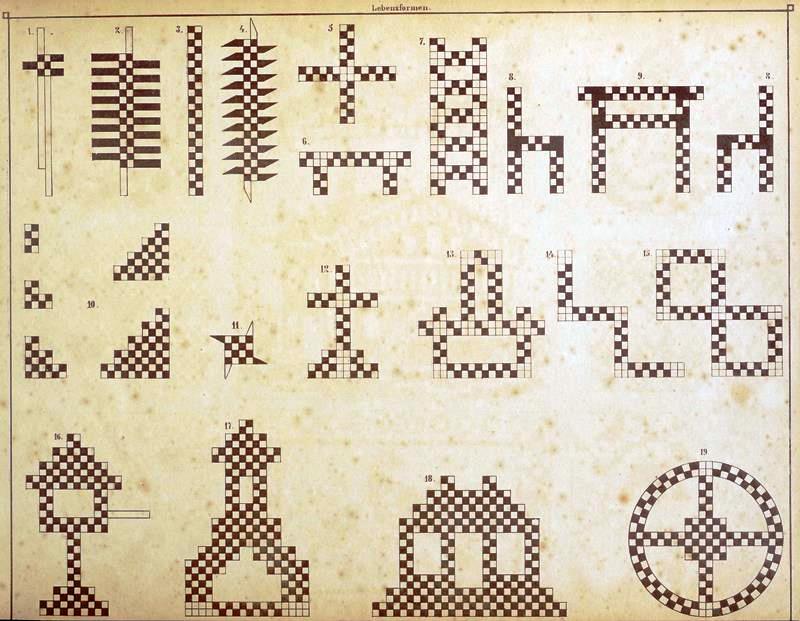 I have not seen a copy of the first or second editions, which only provided information about frame weaving designs, and do not know the date of their publication. This page is based on a partial copy of the third revised and improved edition (which can be accessed online here) and which includes additional material about free weaving designs (called Lebensformen). **********