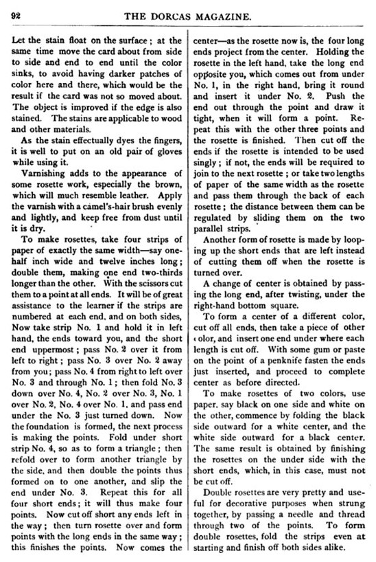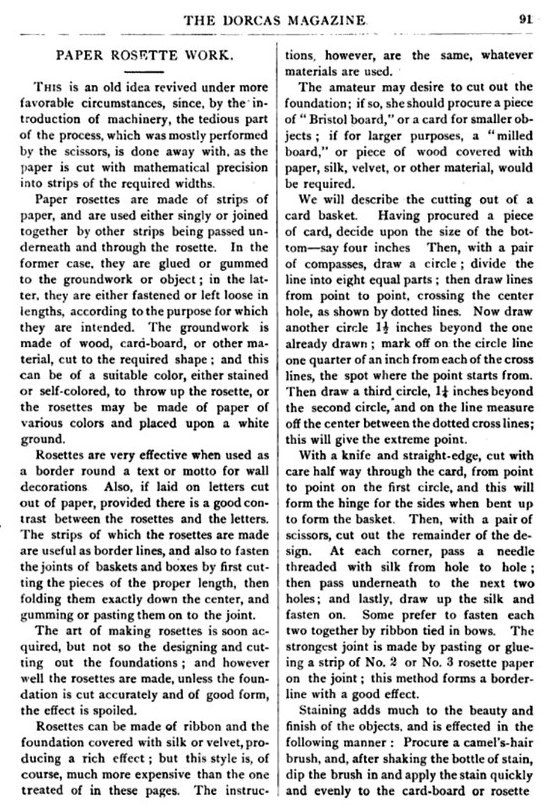 'Dorcas Magazine' for April 1885 contained an article on 'Paper Rosette Work' describing how to make and use the Froebel Star. The first paragraph makes it clear that at this time it was possible to obtain precut strips intended for the folding of these stars. **********