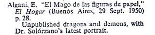 | Article about Solorzano by E Algani in El Hogar, Buenos Aires, Sept 1950 | |||||||