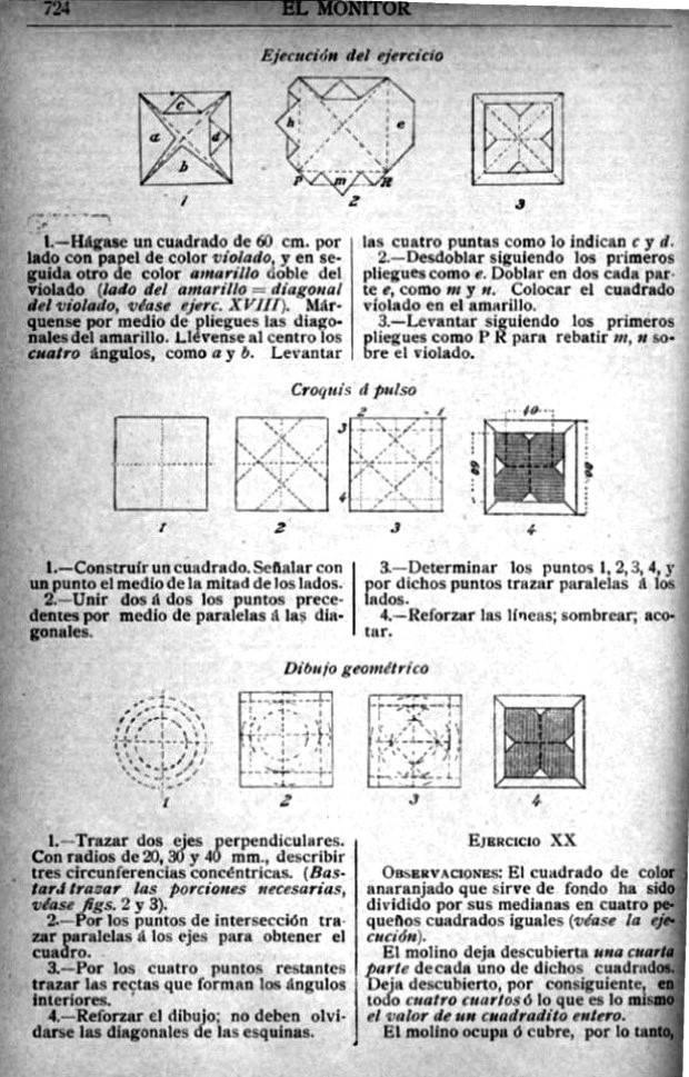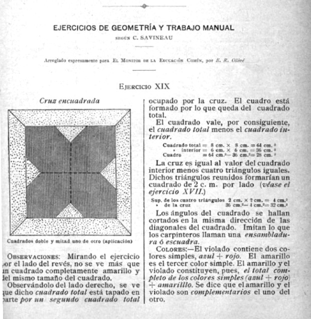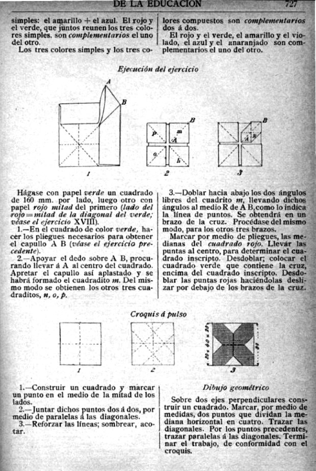 This article is the seventh in a series of articles which provide a complete translation into Spanish of 'Pliage et Decoupage du Papier' by C Savineau, which had been published in Paris in 1897. ********** Analysis 19 The Framed Cross How to fold the Framed Cross, which is a simple Froebelian Fold of Life.