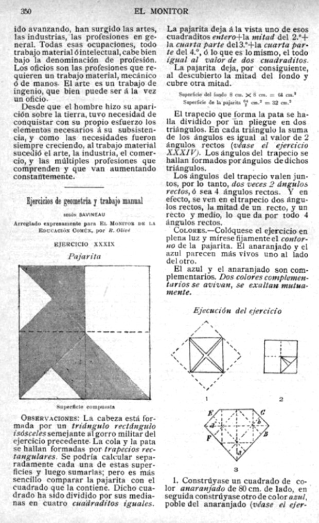 This article is the twelth in a series of articles which provide a translation into Spanish of 'Pliage et Decoupage du Papier' by C Savineau, which had been published in Paris in 1897. ********** Analysis 39 Pajarita - The Cocotte / Pajarita How to fold the Cocotte,