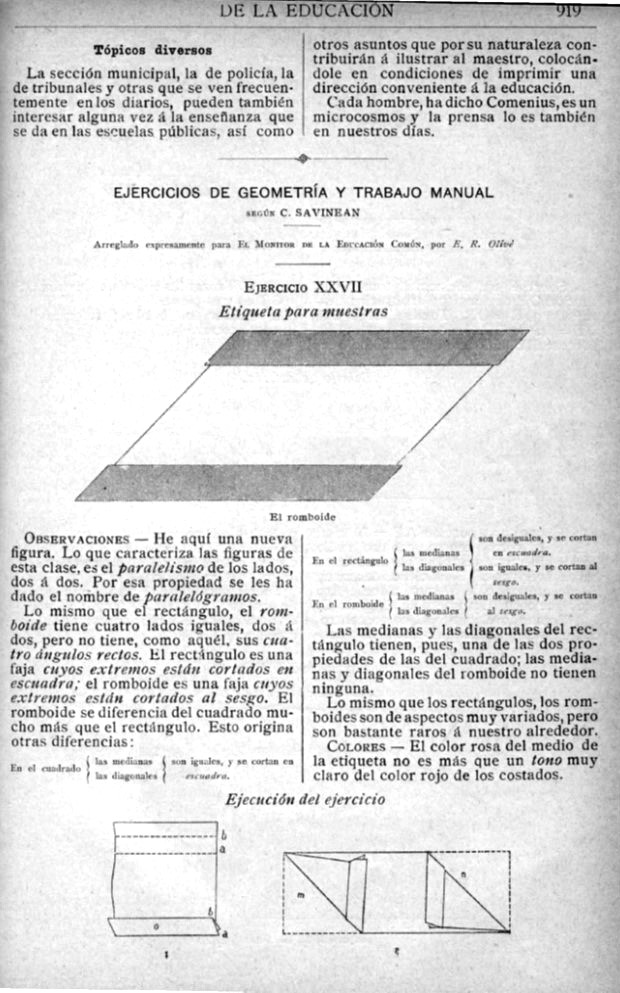 This article is the ninth in a series of articles which provide a complete translation into Spanish of 'Pliage et Decoupage du Papier' by C Savineau, which had been published in Paris in 1897. ********** Analysis 27 How to fold a parallelogram from an oblong