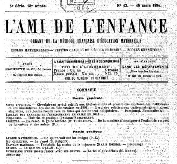 | Article by Marie Koenig in L'Ami de L'Enfance, 15th March 1894 | |||||||
