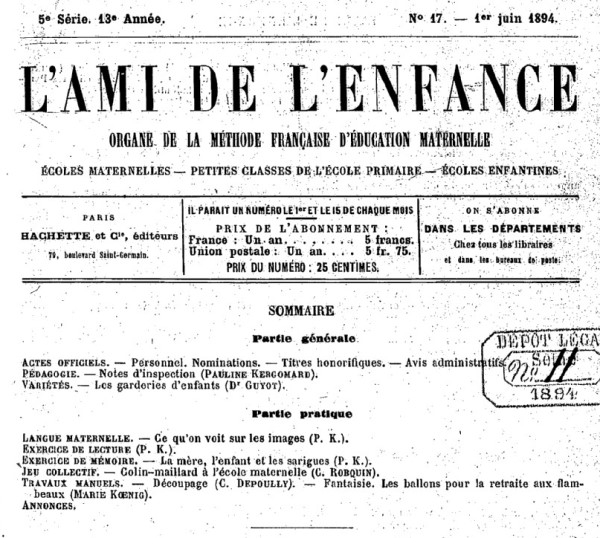 | Article by Marie Koenig in L'Ami de L'Enfance, 1st June 1894 | |||||||
