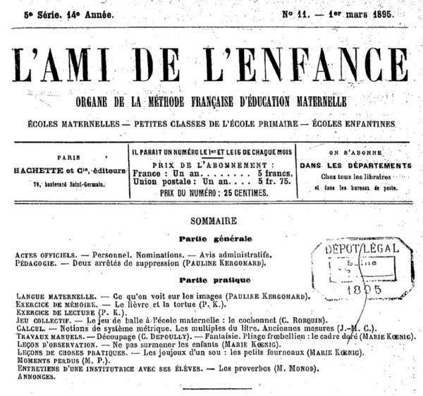 | Article by Marie Koenig in L'Ami de L'Enfance, 1st March 1895 | |||||||