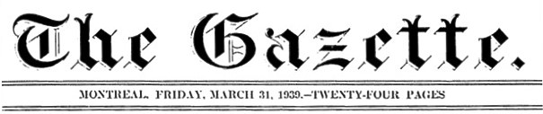 | Article in The Gazette, 31st March 1939 | |||||||