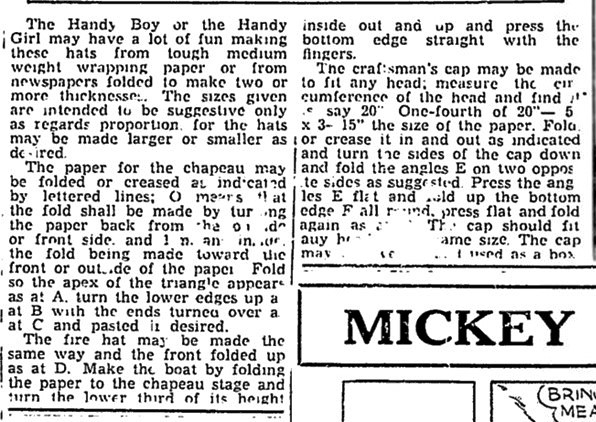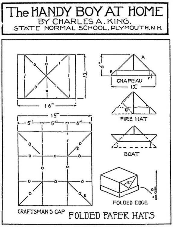 This article contains instructions for making The Newspaper Hat, The Sou'wester, The Paper Boat Hat and a version of The Workman's Hat folded from a square, which is sized by measuring the head. **********