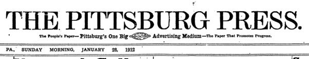 | Article in The Pittsburg Press, 28th January 1912 | |||||||