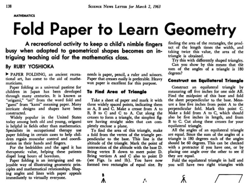 Article by Ruby Yoshioka in the Science News Letter for 2nd March 1963