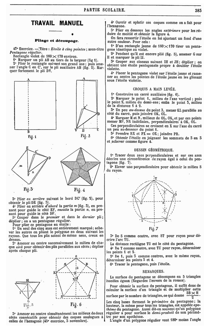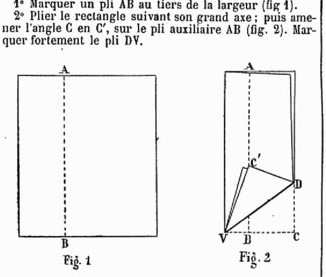 The material from these articles subsequently appeared in 'Pliage et Decoupage du Papier' by C Savineau, which was published in 1897. Information from Michel Grand. ********** Analysis ********** 1st December 1894 How to Construct a Regular Pentagon from an oblong
