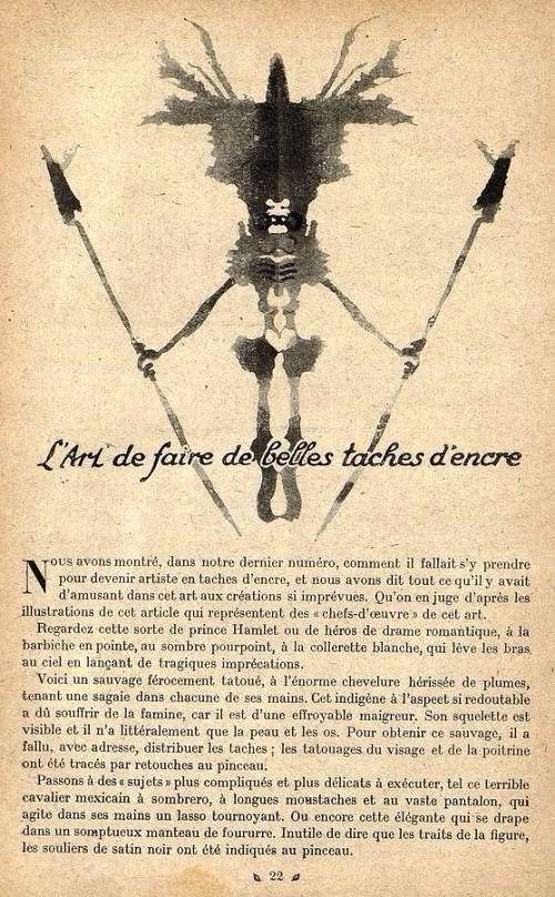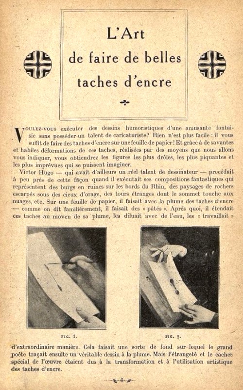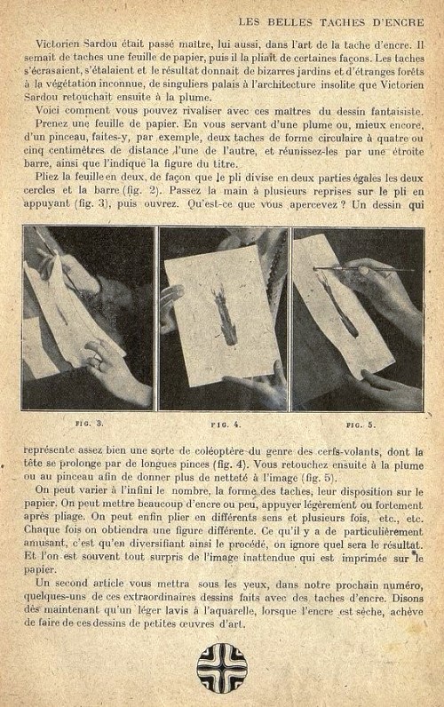 The issues of 'Mon Journal' for 7th and 14th October 1922 both contain articles on 'L'art de faire les belles taches d'encres' ie the making of Symmetrical Inkblots. **********