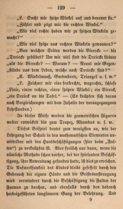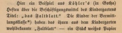 and uses a lesson in paperfolding taken from Koehler's 'Das Frobel'sche Faltblatt' as an example of good practice: