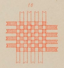 ********** In Europe and the Americas 1855 There is a section about 'Plaiting Paper' in 'Woman's Educational Mission: Being an Explanation of Frederich Froebel's System of Infant Gardens', by Baroness von Marenholtz, translated into English by Elizabeth, Countess Krockow von Wickerode, which was published by Darton and Co in London in 1855. While it is not completely clear, this section seems to refer to free weaving rather than to frame weaving. Certainly it is free weaving that is shown in the illustration: