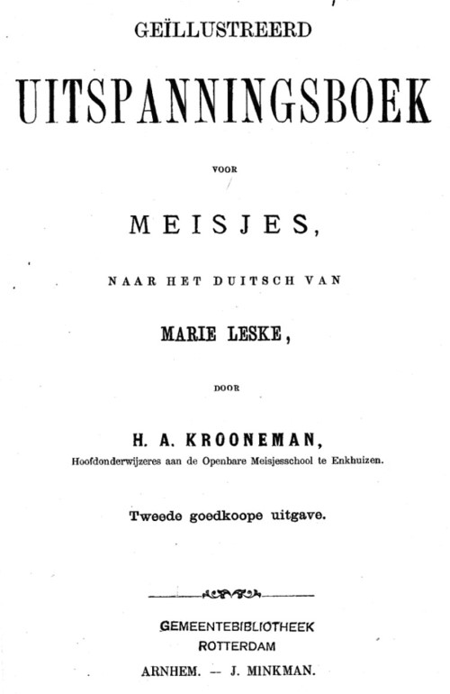 'Geillustreerd Uitspanningsboek voor Meisjes' by Maria Leske was published in 1876. It is a translation into Dutch of the author's 'Spielbuch für Mädchen' which was published in Leipzig in 1865. A full copy of the work can be accessed online here **********