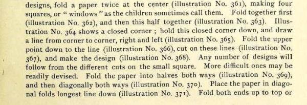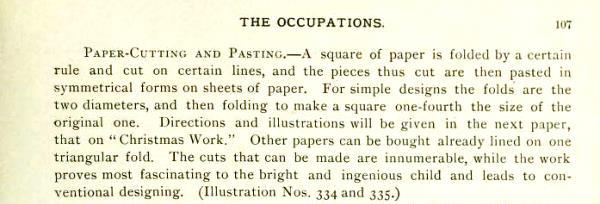 'Kindergarten Papers' by Sara Miller Kirby was published by The Butterick Publishing Company Ltd in New York in 1896. It contains information about Paperfolding, Free Weaving and Auschneiden und Aufklaben. The Introduction states that the articles it contains had previously been published in 'The Delineator'. I have not however been able to find the information about paperfolding which appears in the book in the issues of 'The Delineator' available to me. A full copy of the work can be accessed online here. **********