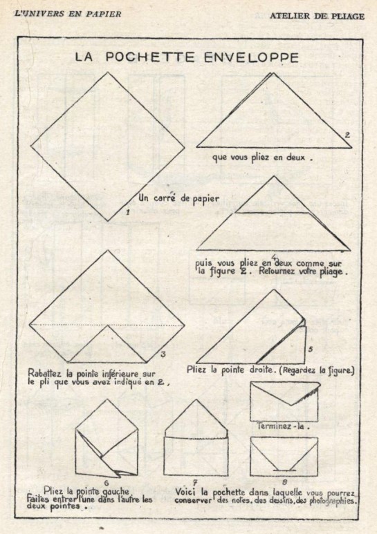 children's magazine 'L'Age Heureux' of 18th July 1929. Information from Michel Grand. ********** The diagrams explain: La Pochette Envelope