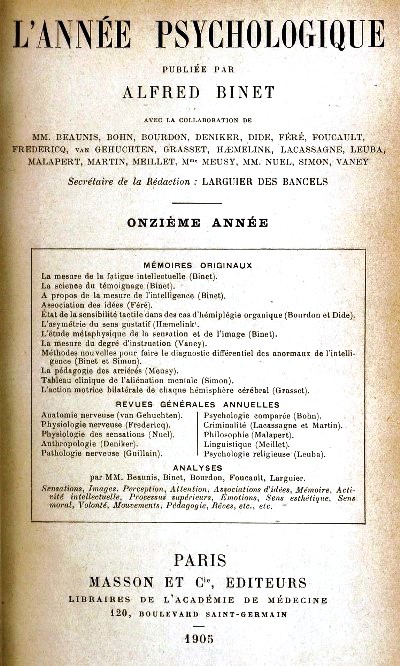 | L'Annee Psychologique: Onzieme Annee by Alfred Binet, 1905 | |||||||