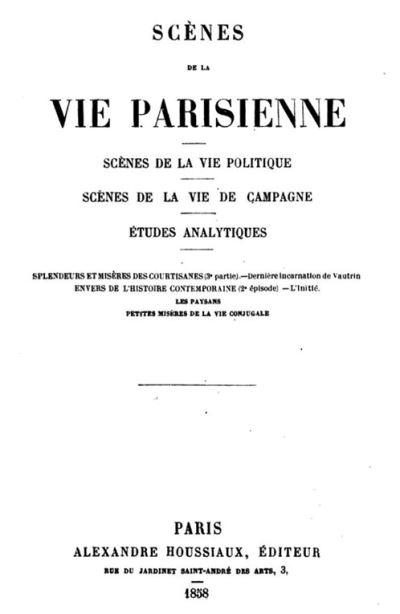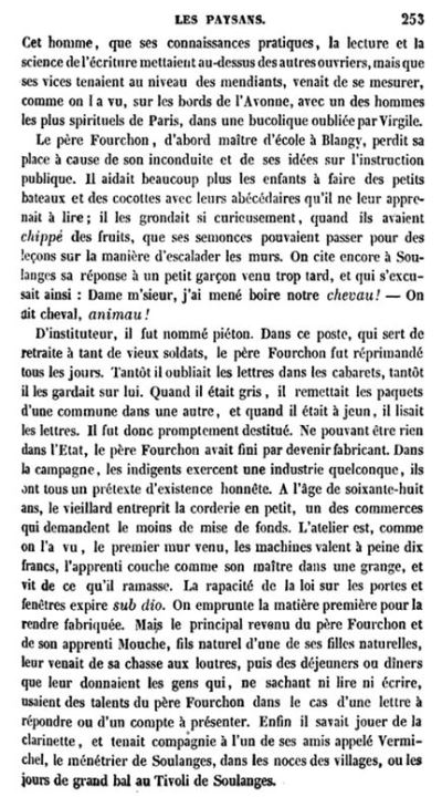 This extract is taken from an edition published in 1858 but I believe the wording is identical to that in the original. The work is part of the series 'Scenes de la vie de camapagne' which is in turn part of 'La vie humane'. **********