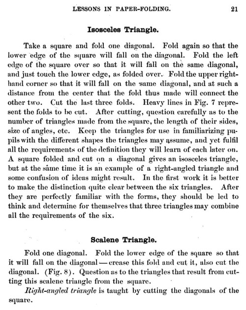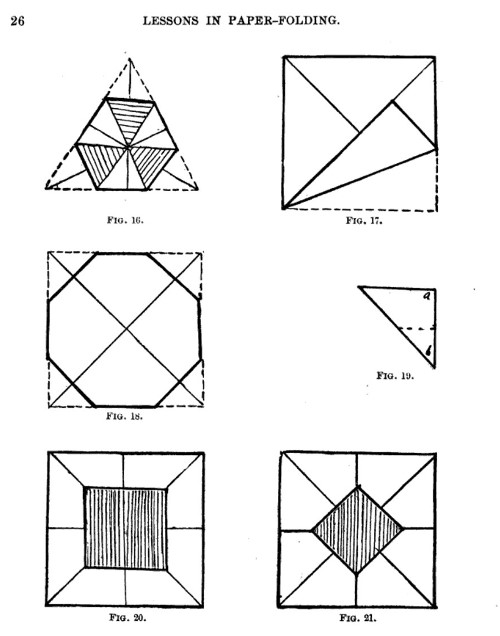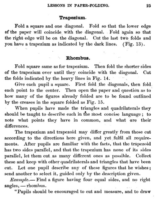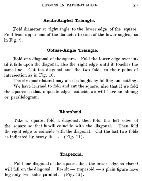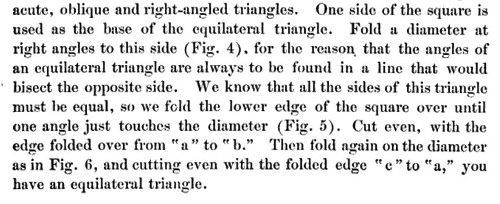 ********** Folding Folding is used to create various flat geometric shapes from the square ie oblongs, various types of triangle, rhomboid, trapezoid, trapezium, rhombus, the regular hexagon, the regular octagon and a four-pointed star. Constructing the equilateral triangle