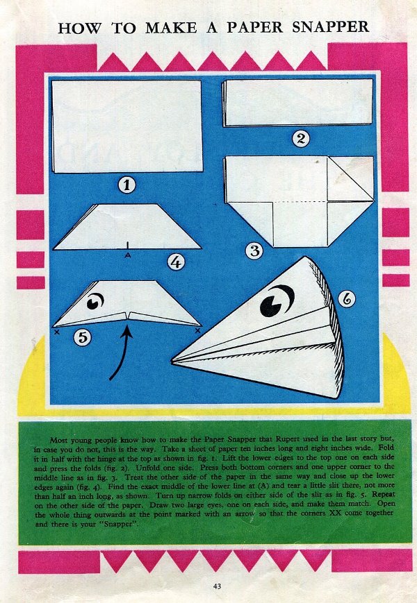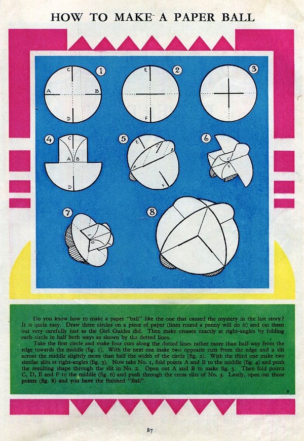 'More Adventures of Rupert' was published by The Daily Express in 1953. It contains two sets of diagrams 'How to Make a paper Snapper' (The (Cut) Paper Snapper) and 'How to make a Paper Ball' (The Slit and Assemble Sphere). **********