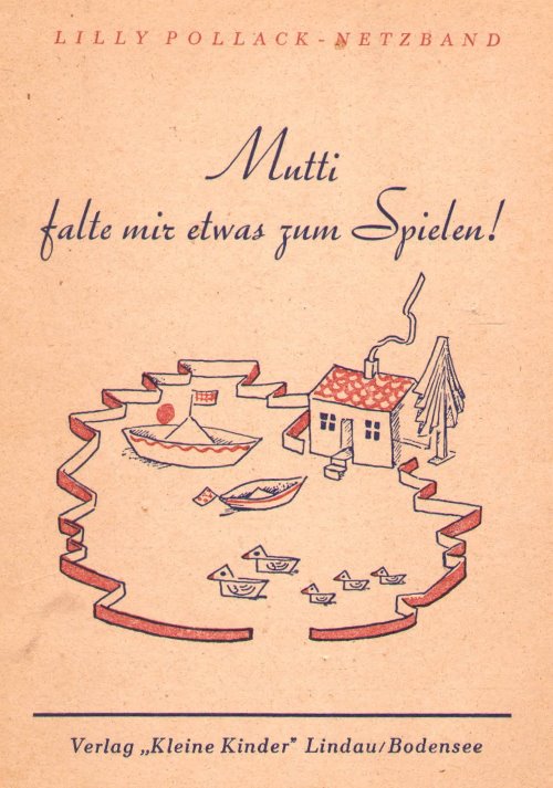 'Mutti falte mir was zum Spielen' (Mum fold me something to play with) by Lilly-Pollack Netzband was published by Kleine Kinder in Lindau in 1947. I learned of this book from Dr Birgit Ebert. See "Mutti falte mir was zum Spielen" I have not seen a full copy of this work. Lilly-Pollack Netzband was the wife of Georg Netzband. **********