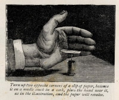 ********** 1888 Issue 762 of 'La Nature' of 7th January 1888 contained an article written by Dr Z which explained 'Un curieux tourniquet', a rotating disc of paper driven by the heat of the hands.