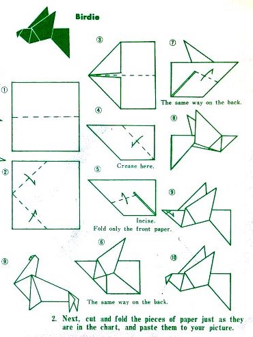 ********** 1966 A cut design for a 'Birdie' appears in 'Origami Fun Book: Seals Book' by Tatsuo Miyawaki, which was published by Shikuko Hoikukan in Matsuyama, Japan in 1966.