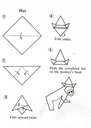 *** Hat 1 also appears as a 'Hat' for a monkey in 'Pop-Up Origami: Monkey Book' by Tatsuo Miyawaki, which was published by Biken-Sha in Matsuyama Japan in 1970
