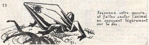 ********** 1929 As 'La Grenouille' in the issue of the French children's magazine 'L'Age Heureux' of 3rd April 1930. The text says 'Make the animal jump by lightly pressing on its back.'