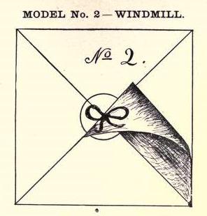 ********** 1895 As 'The Windmill' in 'Course of Paperfolding' by Eleonore Heerwart, which was published by Charles and Dible in London and Glasgow in 1895.
