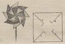 ********** This design also appears: 1887 As 'A Lot of Paper Windmills' in 'How? Or Spare Hours Made Profitable for Boys and Girls' by Kennedy Holbrook, which was published by Worthington Co in New York in 1887.