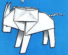 information that should be added. Thank you. There is an article with further information about this design by David Lister, who calls it 'the Pack Mule with Panniers' at https://britishorigami.info/academic/lister/pack_mule.php which states, inter alia, 'the Pack Mule and the Elephant appear in many Spanish and Argentinean books of paperfolding, including "El Mundo de Papel" by Nemesio Montero (1939), "El Plegado y Cartonaje" (1940) by Corina Lucia and Antonio Lucia, "Papiroflexia" by E. Gutierrez Gil (undated) and "Papiro Zoo" by Giordano Lareo (1941). The Elephant, but not the Pack Mule appears in "Tratado de Papiroflexia Superior" (1944) by Dr. Vicente Solorzano Sagredo, who had been born in Spain, but who had emigrated to Argentina. However, I have not been able to inspect all of Solorzano's books and the Pack Mule may appear in one of his other books.' ********** 1939 As far as I know diagrams for this design were first published as 'El borriquillo con aguaderas' (The Donkey with Panniers) in 'El Mundo de Papel' by Dr Nemesio Montero, which was published by G Miranda in Edicions Infancia in Valladolid in 1939. At the top of the Indice Alfabetico de Modelos (Alphabetical Index of Designs) the author states: Los modelos senalados con un punto * son originales del autor y de se hermana Esperanza. (The designs marked with an asterisk are originals of the author and his sister Esperanza.) This statement is, however, problematical. While some of the designs marked with asterisks may indeed be original works of the author and/or his sister the status of this claim is somewhat dubious in relation to other designs, including 'El borriquillo con aguaderas', which is most probably a design invented at an earlier date by a follower of Miguel de Unamuno. (Per Juan Gimeno)