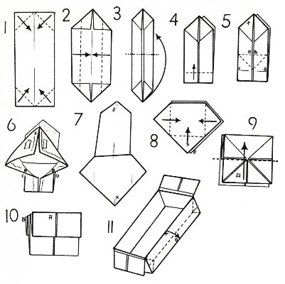 ********** 1939 As 'A Candy Box' in 'Fun with Paper' by Joseph Leeming, which was published by Spencer Press Inc in Chicago in 1939.