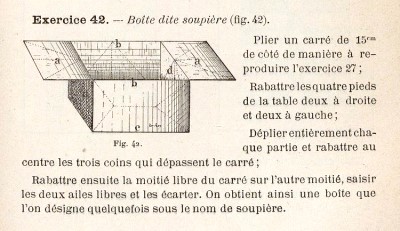 ********** 1887 As 'Boite dite soupiere' (box called a soup tureen) in 'Le Travail Manuel a L'ecole Primaire' by M. Coste et J. Lapassade, which was published by Lafon, Vve Ribaut et Tonnet in Pau and A Jeande in Paris in 1887.