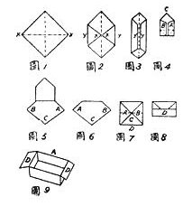 ********** 1934 The design appears as 'Paper Tray' in 'Zhezhi Xinfa' (New Ways to Fold Paper), which was published by The Commercial Press in China in 1934.