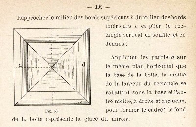 ********** 1890 Diagrams for 'Une glace a cadre' appear in 'Les travaux manuels a l'ecole primaire a l'usage des ecoles de garcons' by Dauzat and Deramond, which was published by Alcide, Picard et Kaan in Paris in 1890.