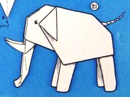 ********** 1945 An uncut, and therefore three-legged, version of the design also appears as 'Elefante' in 'Tratado de Papiroflexia Superior' by Vicente Solorzano Sagredo, which was self published in Buenos Aires in 1945. This design is included in a section devoted to Miguel de Unamuno but is not specifically identified as, or evidenced as being, one of his designs. Roughly translated the footnote says, 'It does not appear in any of the said magazines: In Buenos Aires we have seen Mr Carlos Moya, the painter Larranaga and Dr Benavente do it.'