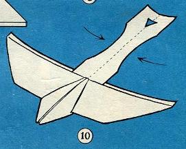 ********** 1928 As 'The Airplane', in Murray and Rigney's 'Fun with Paper Folding', published by the Fleming H Revell Company, New York in 1928. This version uses a tiny cut to create ailerons at the end of the tail.