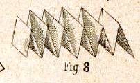 ********** The Witch's Ladder is mentioned, under the names 'les serpents ou les accordeons' in the 17/1/1883 edition of the Journal de Instituteurs. The third paragraph of the right hand column says, roughly, 'The folding of two strips of paper of different colours, serpents or accordions as children call them, which we have all made under the instruction of out grandmothers, allows numerous observations on numbers, on lines, on the triangle, the square etc.' ********** 1884 The design also appears in 'Jeux et Jouet du Jeune Age' by Gaston Tissandier, which was published by G Masson in Paris in 1884.