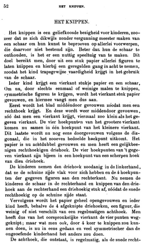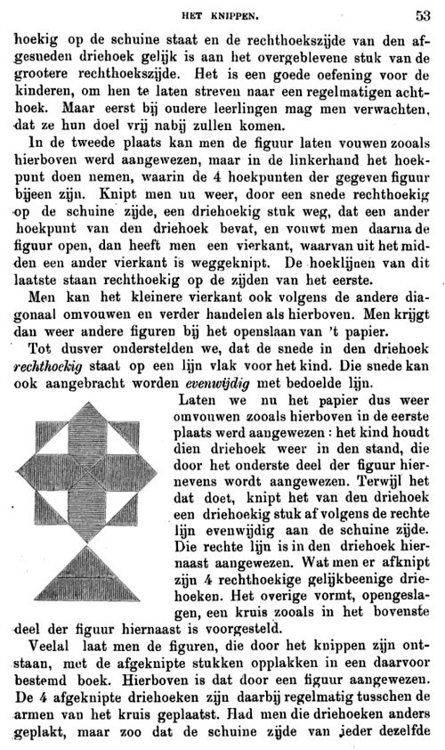 The Foreword is largely an uncomplimentary critique of Froebel's language and writing style. The author is also critical of the use of verbal descriptions of, or names for, paperfolds, particularly to describe Folds of Life, which he would probably remove from the Froebelian curriculum completely. A full copy of the work can be accessed online here. **********