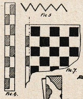 ********** The following designs appear in a section of the work entitled Novel Designs in Paper Tearing. For a full understanding of the nature of the designs reference should be made to the full text of this section which is reproduced at the foot of this page. The Chequerboard