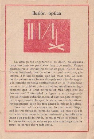 'Pasatiempos: Fisica Recreativa' was published by Editorial Muntanola in Barcelona. The work is undated but was probably published c1918. A full copy of the work is given at the foot of the page. Only a few of the items are paperfolding related. **********