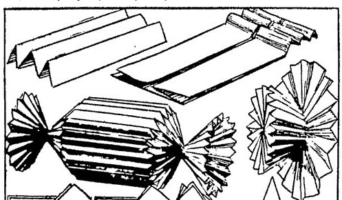 ********** 1931 A design for a pleated Balloon appears in the revised 3rd edition of 'Lustiges Papierfaltbüchlein' by Johanna Huber, which was published by Otto Maier in Ravensburg, Germany in 1931. The text suggests using these as lanterns for a Chritmas Tree. A candlestick can be obtained by turning the design inside out.