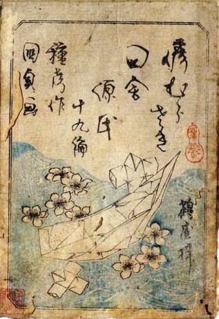 This print, which shows a Nakarabune and Komoso was mentioned by Satoshi Takagi in his 'Origami koten ni miru origami' (Origami from the Classics), which was published in 1993.