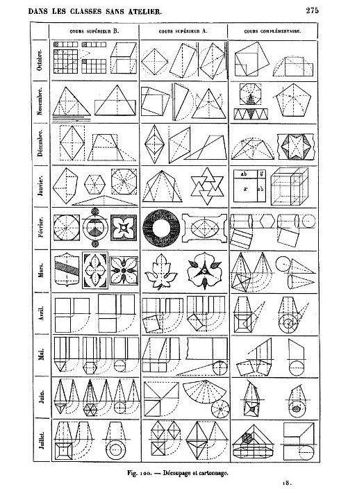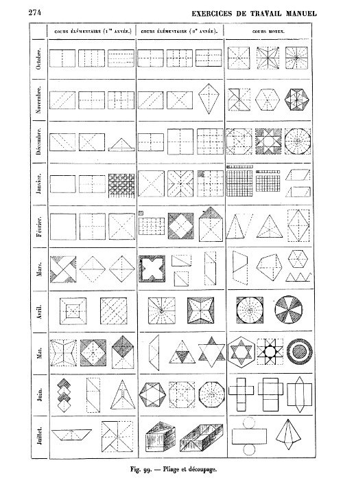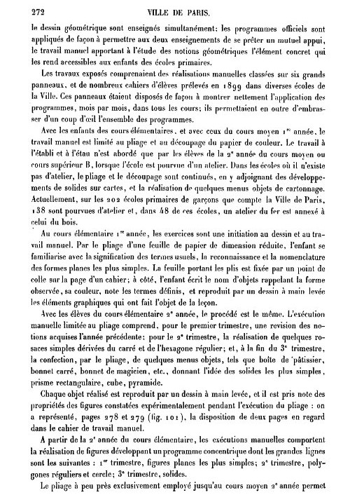 Rapports du Jury International: Ecoles Elementaires by M Rene Leblanc was published by the Minister du Commerce, de L'Indfustrie in Paris in 1902. It contains a syllabus for paperfolding and paper cutting for the various classes of the Ecoles Elementaires. **********