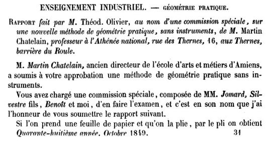 | Rapport sur une Nouvelle Methode de Geometrie Pratique de Martin Chatelain, 1849 | |||||||