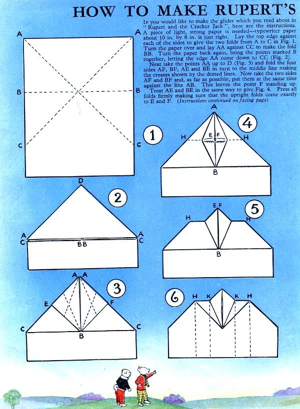 'Rupert' was published by The Daily Express in 1957. It contains folding instructions titled 'How to make Rupert's Folded Paper Glider' (a version of The Dove) and a story titled 'Rupert and the Cracker Jack' which features the design. **********