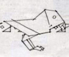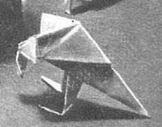 ********** 1964 A version of this design appears in 'Secrets of Origami', by Robert Harbin, which was published by Oldbourne Book Company in London in 1964. Note, however, that this version is folded from a bird base and only has one back leg.