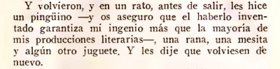 ********** Unamuno's Penguin (Pinguino) In his memoir 'Un recuerdo puro' published in 1910, Unamuno claimed to have invented a penguin. There is no accompanying illustration.